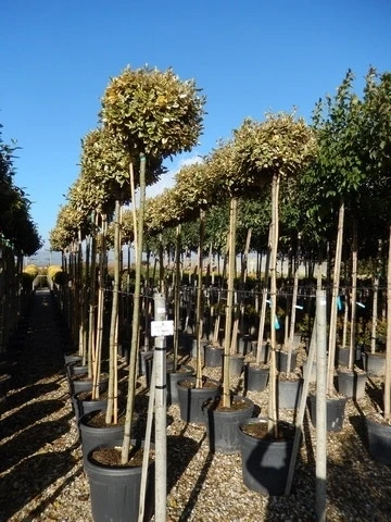 Elaeagnus ebbingei ‘Gilt Edge’ gekweekt als bol op stam.