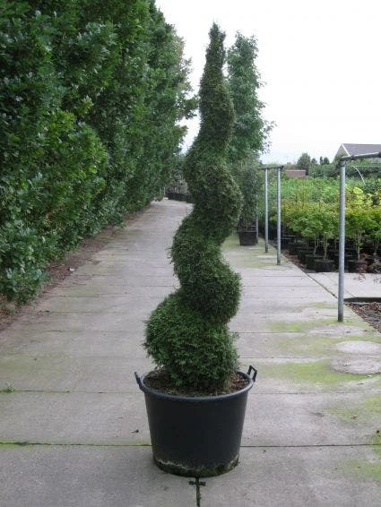Thuja occidentalis ‘Smaragd’ in spiraalvorm.