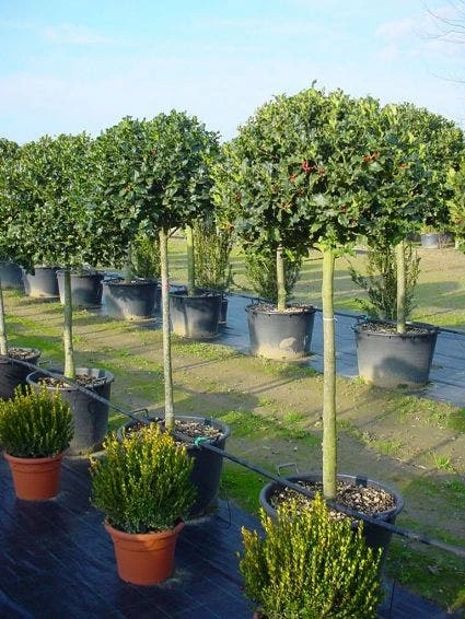 Ilex aquifolium is de gewone hulst die vaak voor hagen wordt gebruikt.